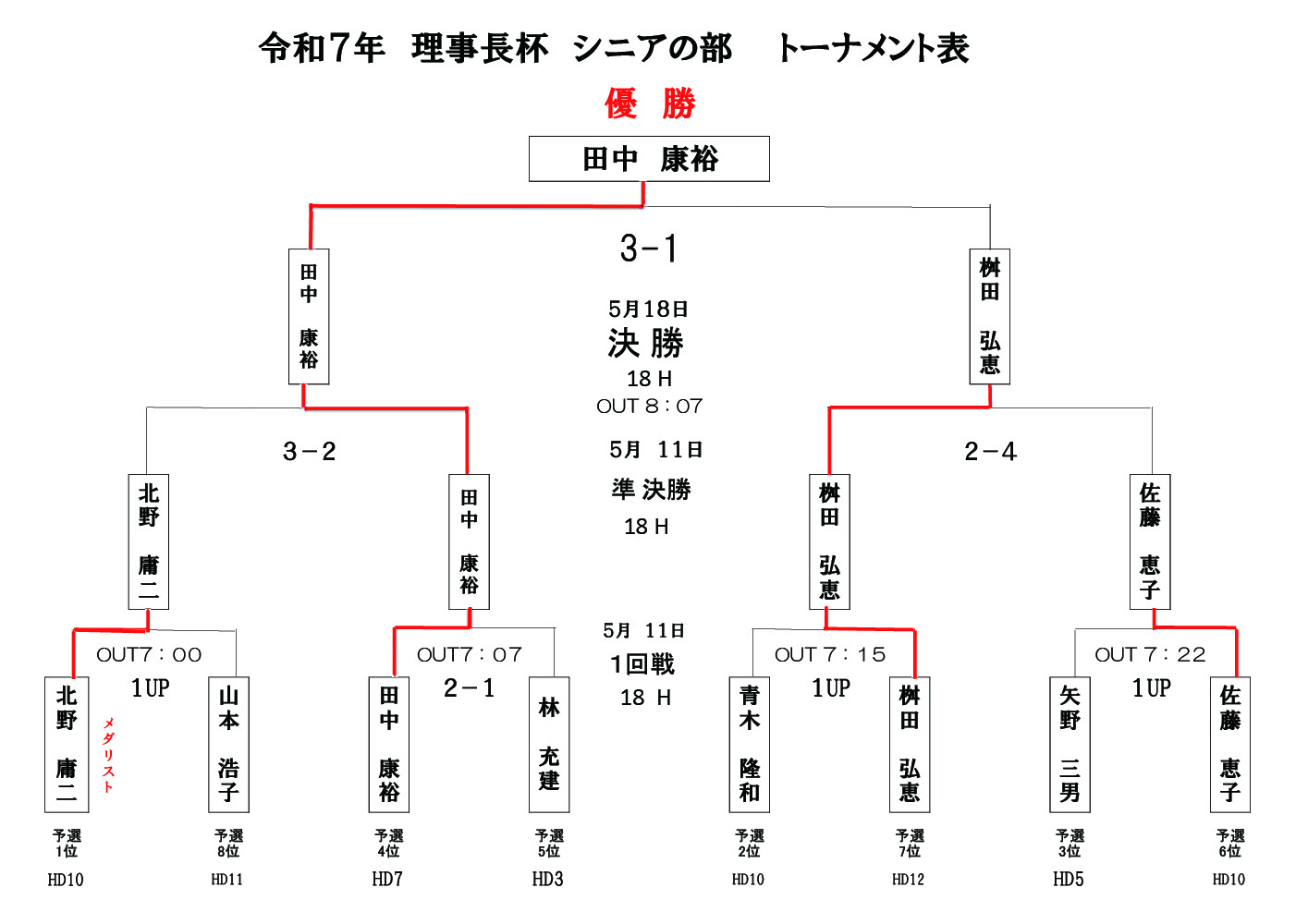 順位 | 氏名 | IN | OUT | IN | TOTAL | HDCP | NET | |