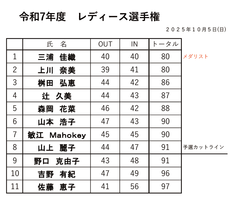 2025年度 レディース選手権 チャンピオン